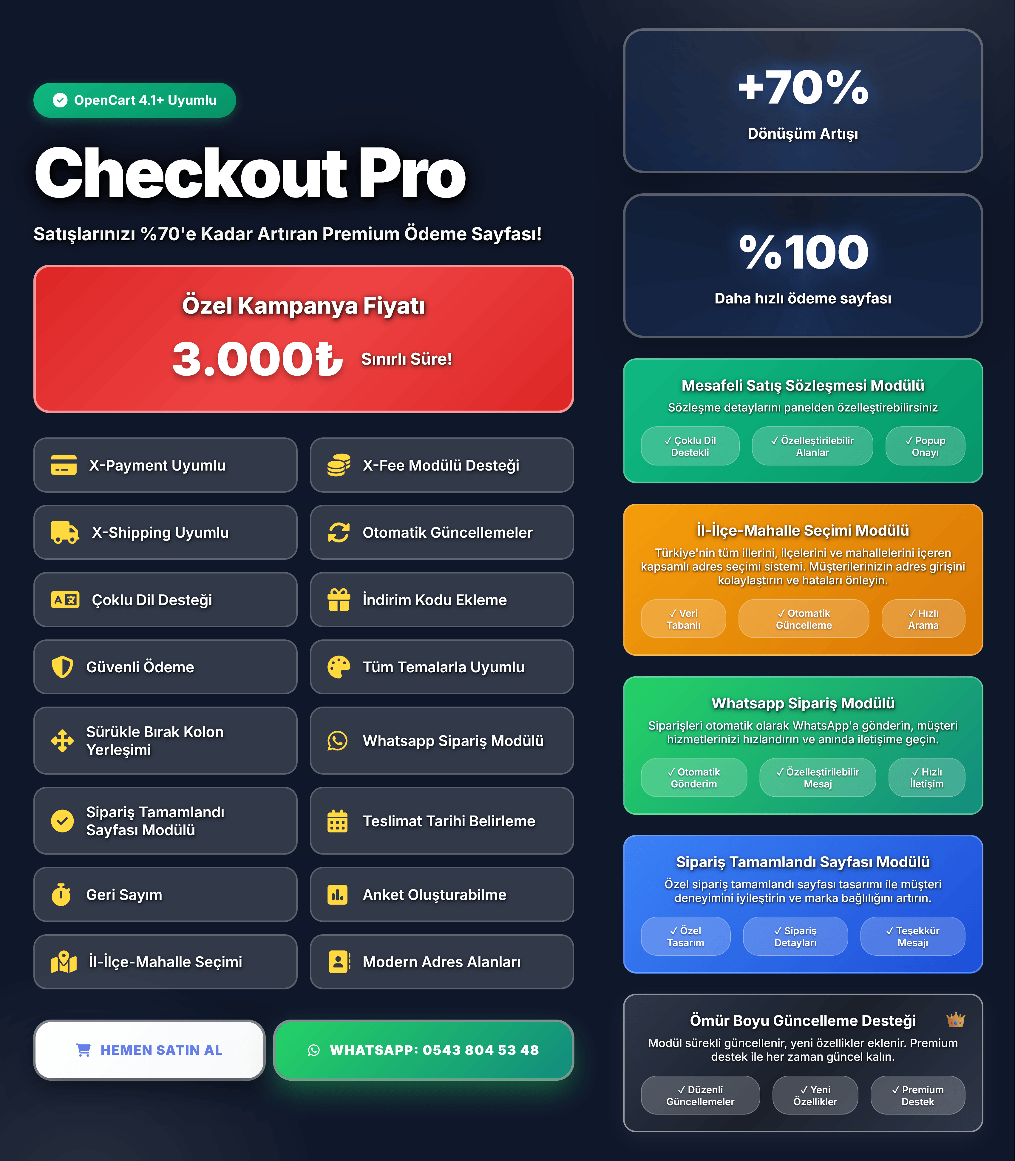 Müşterileriniz tüm ödeme işlemini tek sayfada tamamlar. %70 daha hızlı sipariş, %40 daha fazla satış! Klasik çoklu sayfa sistemine veda edin.